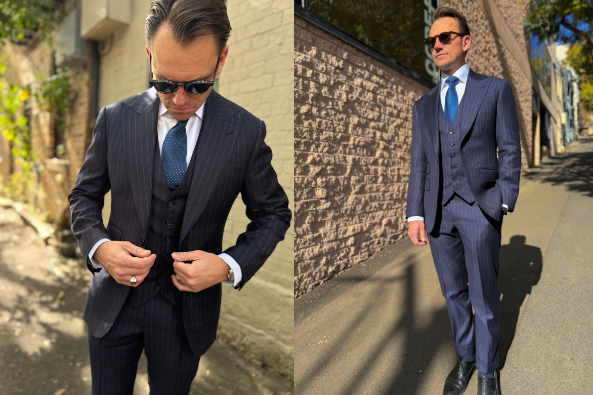 For transeasonal pieces, we generally favour structured suits with mid weight canvassing through the chest and a balanced shoulder line. This approach allows the garment to work across a wider range of conditions, from air-conditioned offices to cooler evenings, without losing its shape.