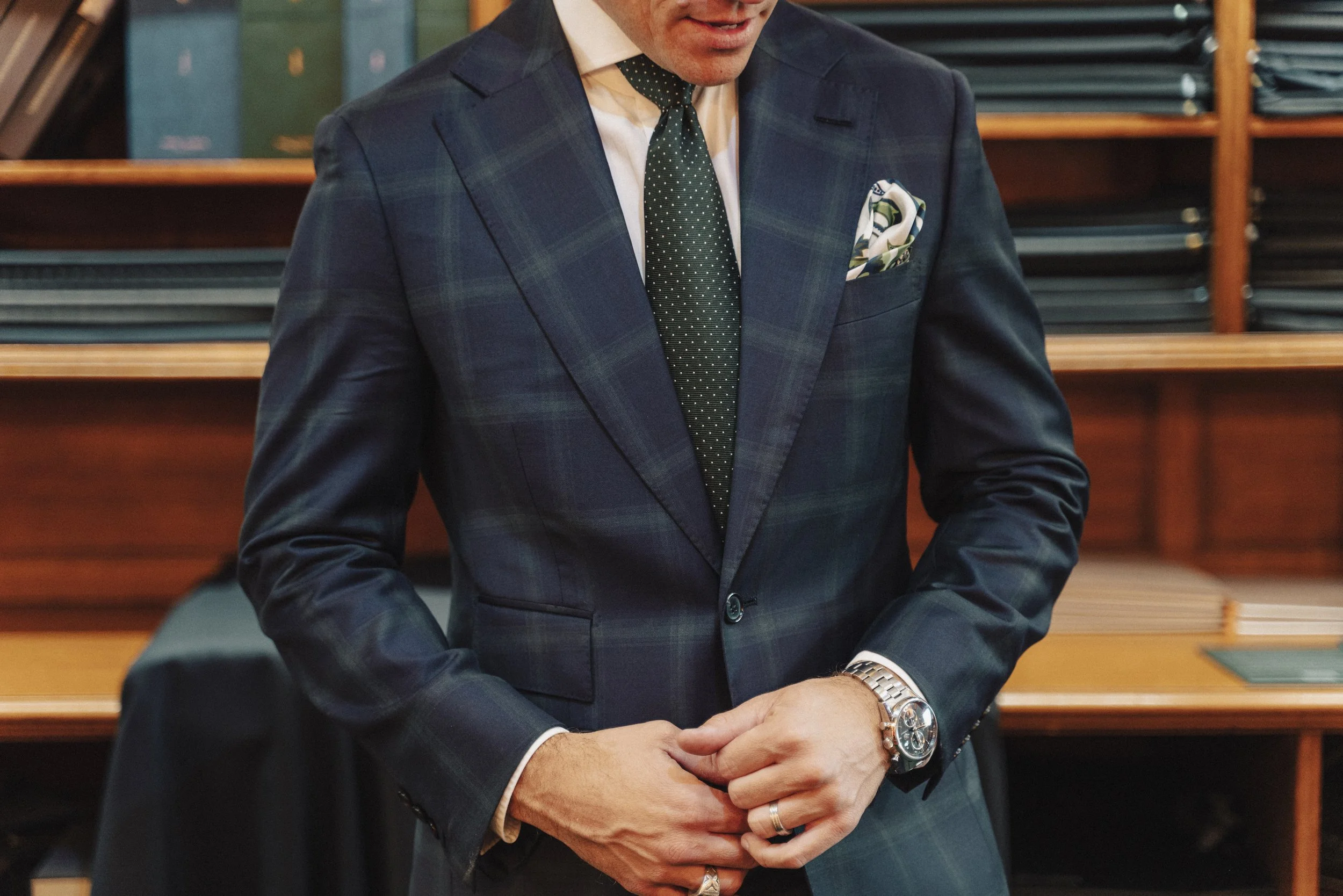 The exception is purely summer tailoring, where lighter canvassing or a more unconstructed shoulder may be appropriate. For transeasonal wear, however, maintaining structure gives the jacket greater longevity and flexibility as the weather changes. Client lifestyle, work environment, and travel all inform these decisions.